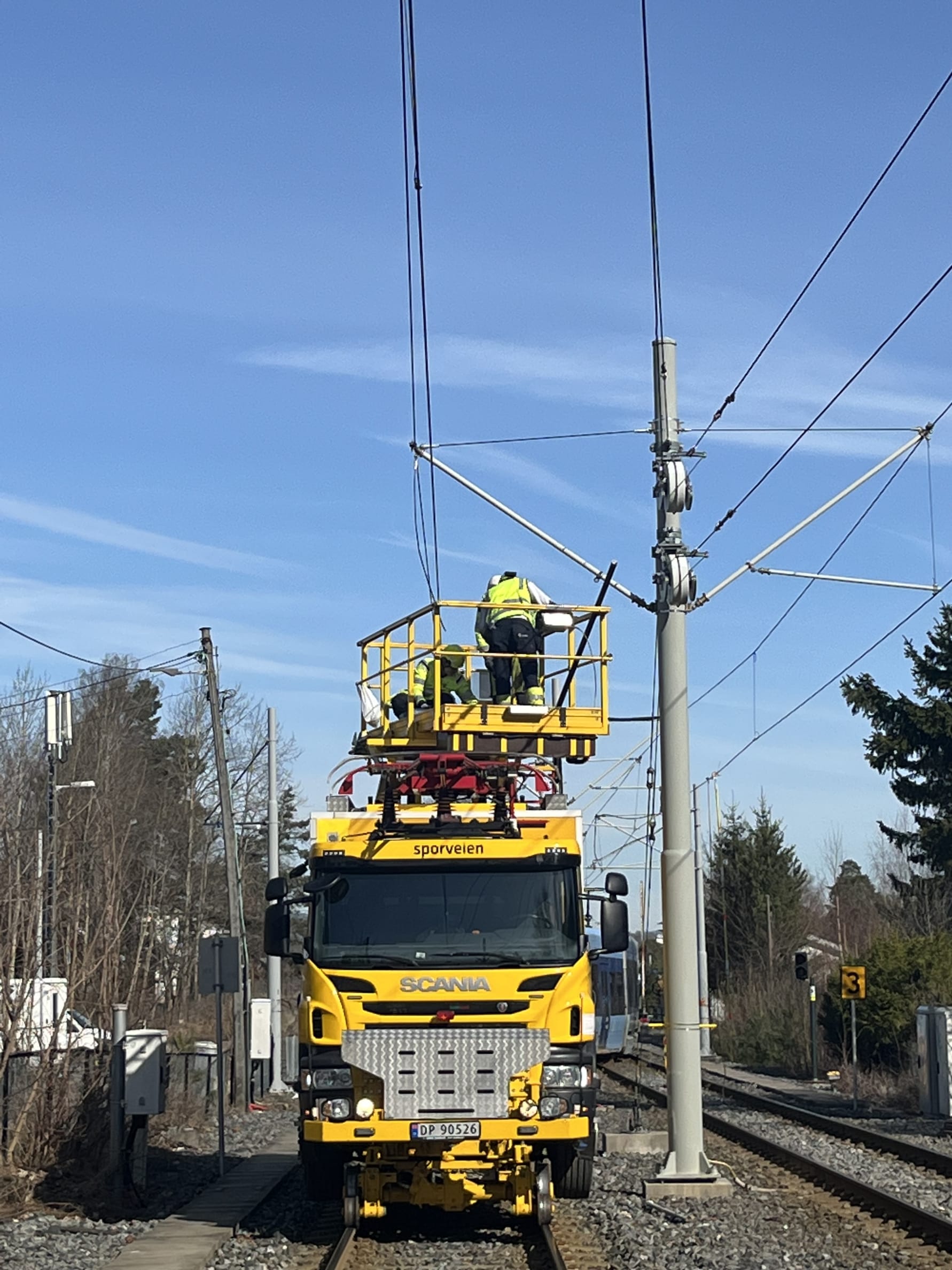 Arbeid på kontaktledningene mellom Ljabru og Bråten. Foto: Sporveien.