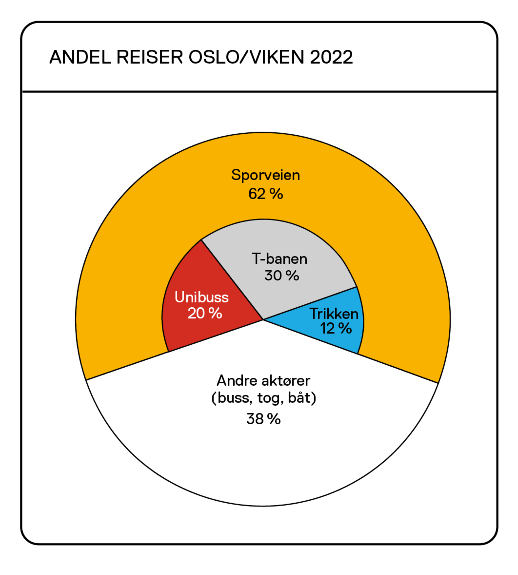Sporveien er Norges største leverandør av kollektivtransport målt i antall reiser. I datterselskapene. Sporveien T-banen, Sporveien Trikken og Unibuss ble det i 2024 gjennomført 264 millioner enkeltreiser. Konsernet har 3400 ansatte, og i 2024 hadde selskapet en omsetning på 5,7 milliarder kroner. Sporveien eier, utvikler og forvalter infrastrukturen knyttet til T-bane og trikk - det vil si skinner, stasjoner, tuneller, baser, bygninger og signalanlegg. Konsernet har også et helhetlig ansvar for driften av kollektivtrafikken, inkludert vedlikehold og oppgraderinger av vogner, busser, skinner og annen infrastruktur. Sporveien eier i tillegg datterselskapene Sporveien Vognmateriell, Sporveien Bussanlegg og Sporveien Media. Sporveien er 100 prosent eid av Oslo kommune.
