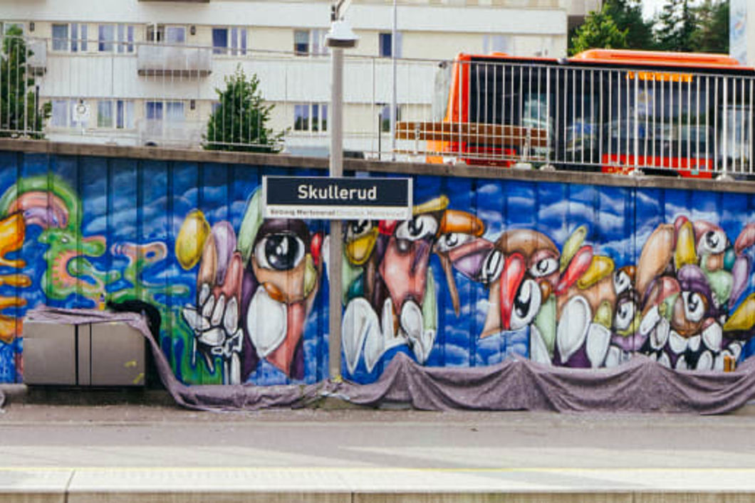 Skullerud stasjon ble i 2016 dekorert av den spanske kunstneren Felipe Pantone. Med sitt ultradynamiske design har han preget stasjonen i mange år, men dessverre har ikke stasjonen tålt tidens tann og trengte nå nytt liv.