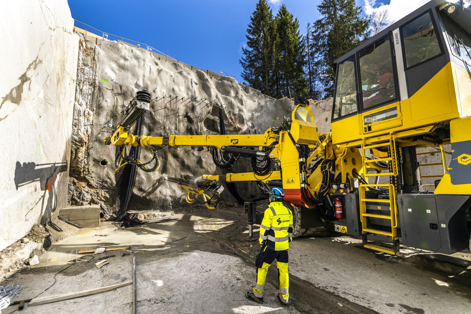 Tunnelen bygges med tradisjonell tunneldriving, ved at det først bores og deretter sprenges innover i fjellet.