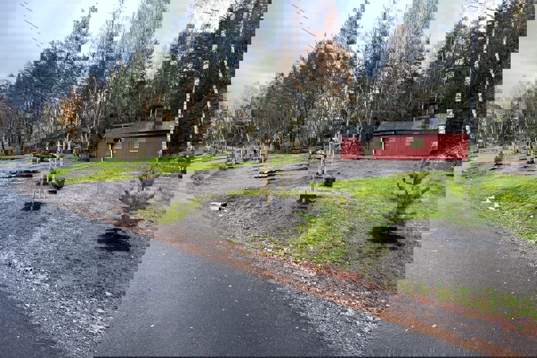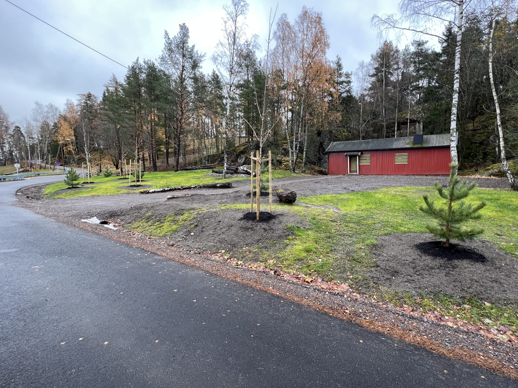 Grønt: I Thygesons vei er både veien blitt reetablert og området rundt speiderhytta er blitt satt istand. Foto: Sporveien