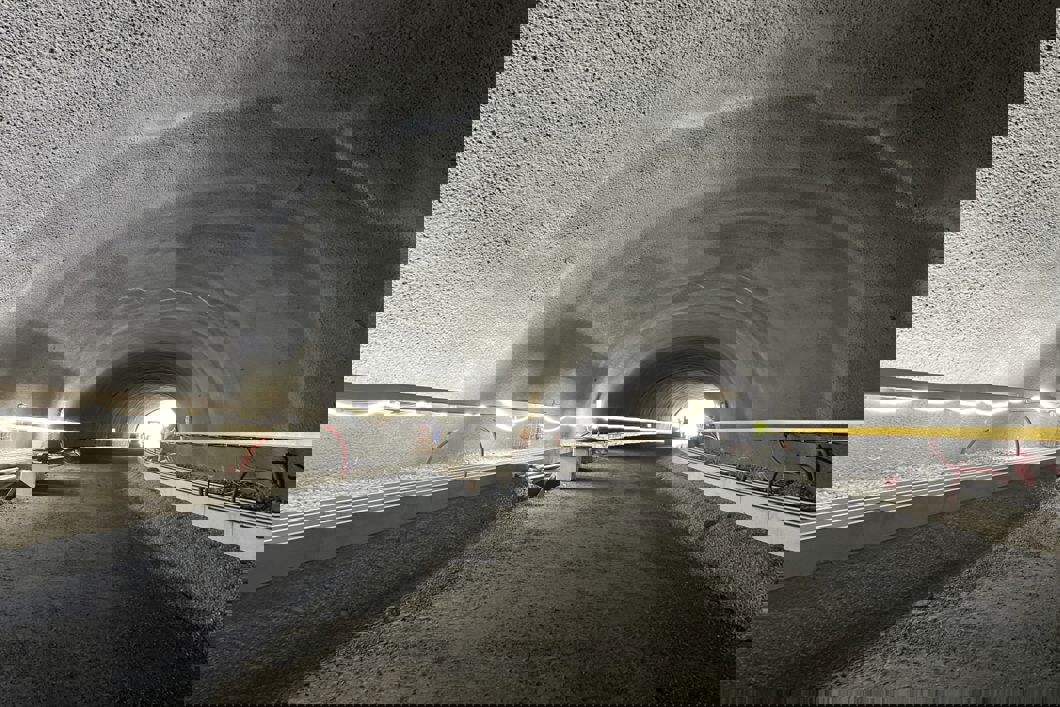 KLAR FOR SPORARBEID: Nye Hellerudtunnelen er klargjort til arbeidet med selve sporene.