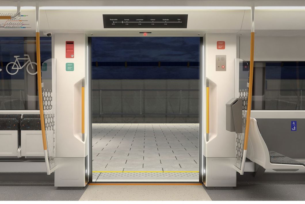 Bedre av- og påstigning: Bredere dører skal bidra til mer fleksibel av- og påstigning . Montasje: Zaha Hadid Architects og A_Lab/Sporveien.