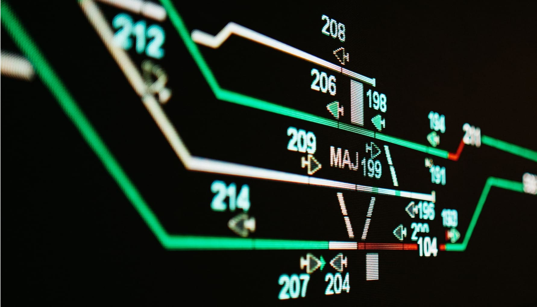 Illustrasjonsfoto, fra togtavle som viser oversikt over alle T-banetog i trafikk i Oslo. Foto: Sporveien.