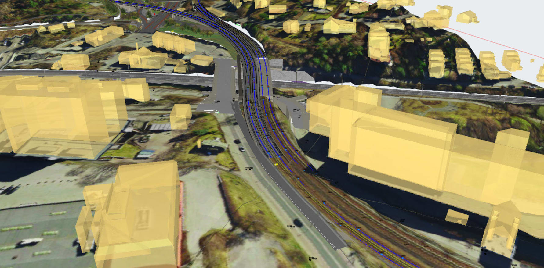 Over elva og jernbanen: Nye Bryn bru må heises inn over fjernvarmebrua nærmest Østensjøveien og inn på nybygde søyler og landkar. Arbeidene starter natt til mandag 6. februar, når Østensjøveien stenges. FOTO: Sporveien AS.