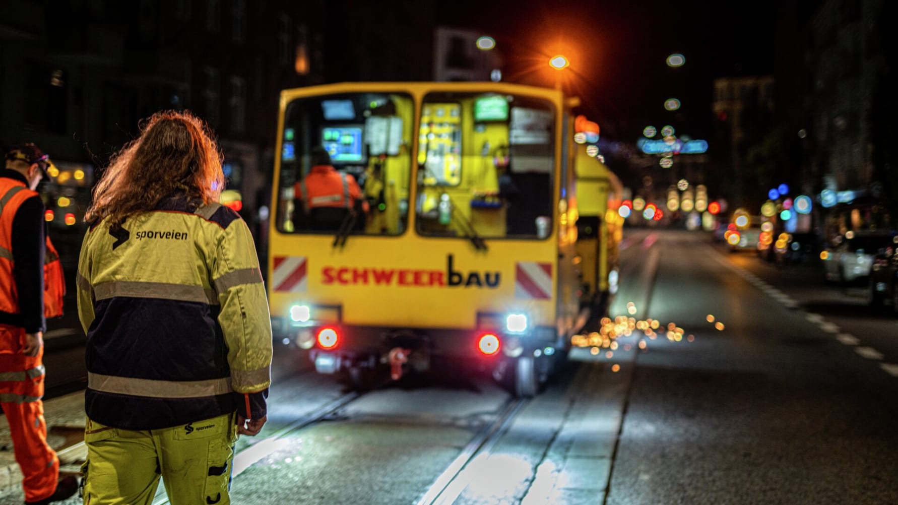 Tradisjonsrikt sommerarbeid: Oslos trikkeskinner må slipes for å redusere slitasje og støy. I sommer slipes rundt en fjerdedel av trikkesporene i byen. Foto: Sporveien AS