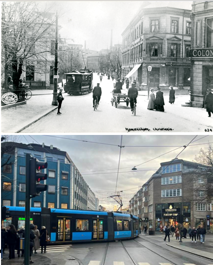 Det er for øvrig ikke første gang det går trikk i Josefines gate. For temmelig nøyaktig 100 år siden, frem til 1925/1926, gikk det elektrisk sporvei gjennom daværende Josephine gade i Christiania.
