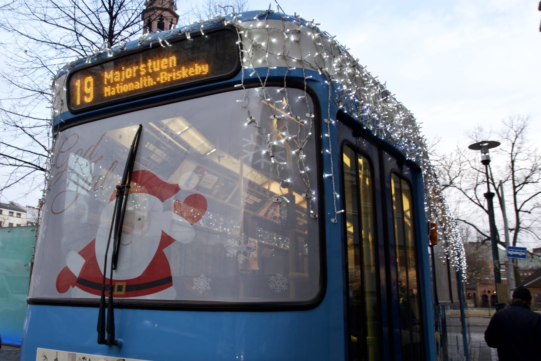 Lystrikken kjører i ordinær rutetrafikk i desember etter at lystenningsarrangementet er over, så det er bare å holde øynene åpne: Kanskje får du en tur med årets juletrikk?