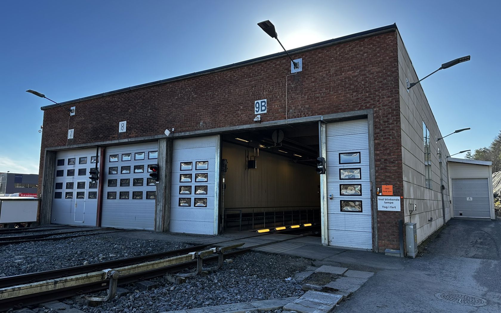 Innkjøring til vognhallen på Ryen base. Her vil Sporveien etablere en ny lakkhall.